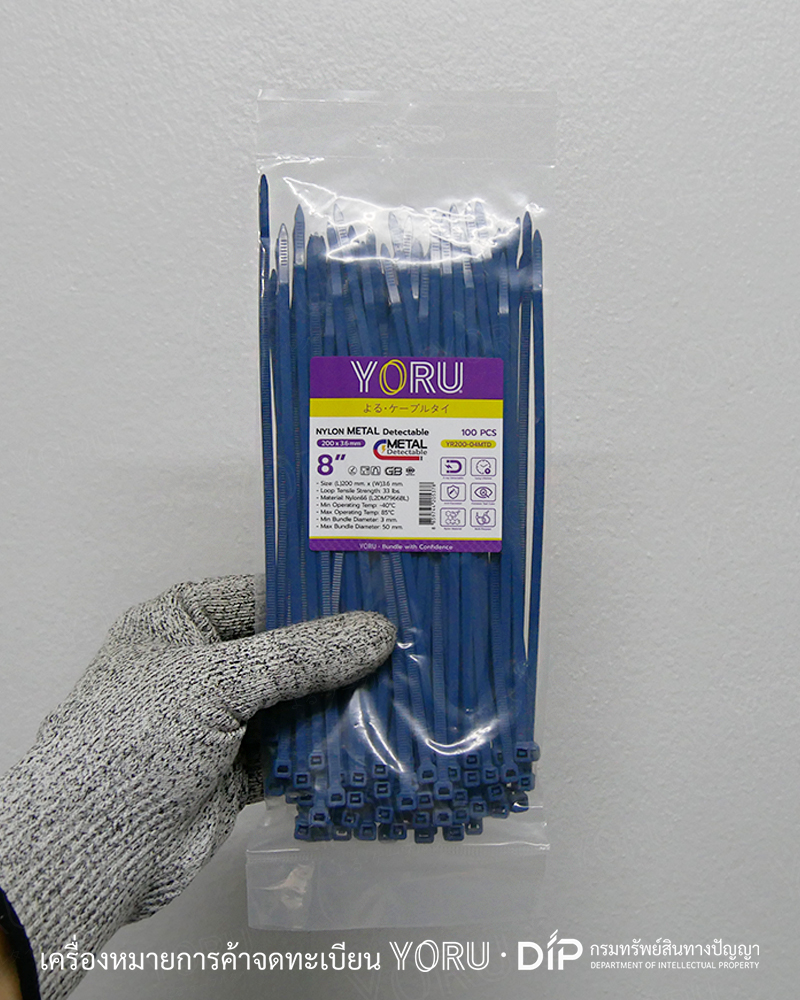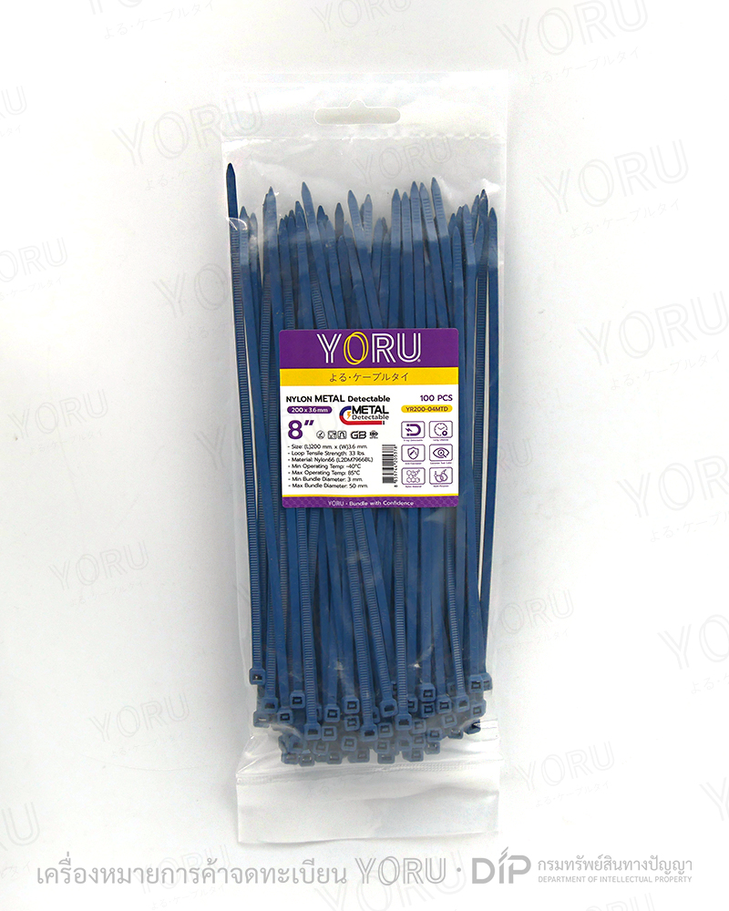 หน้าแรก › สเปคสินค้า › เคเบิ้ลไทร์ YORU สีน้ำเงินเขียว ขนาด 3.6 x 200 mm. (8 นิ้ว) แบบตรวจจับโลหะ Metal Detachable