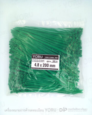 หน้าแรก › สเปคสินค้า › เคเบิ้ลไทร์ YORU สีเขียว ขนาด 4.8 x 200 mm. (8 นิ้ว) แบบไนลอน Standard