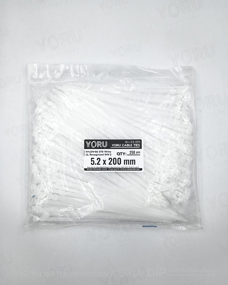 หน้าแรก › สเปคสินค้า › เคเบิ้ลไทร์ YORU สีขาว ขนาด 5.2 x 200 mm. (8 นิ้ว) แบบไนลอน Standard
