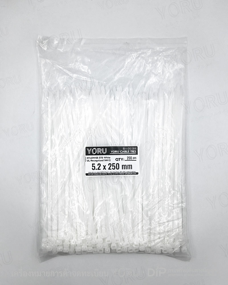 หน้าแรก › สเปคสินค้า › เคเบิ้ลไทร์ YORU สีขาว ขนาด 5.2 x 250 mm. (10 นิ้ว) แบบไนลอน Standard