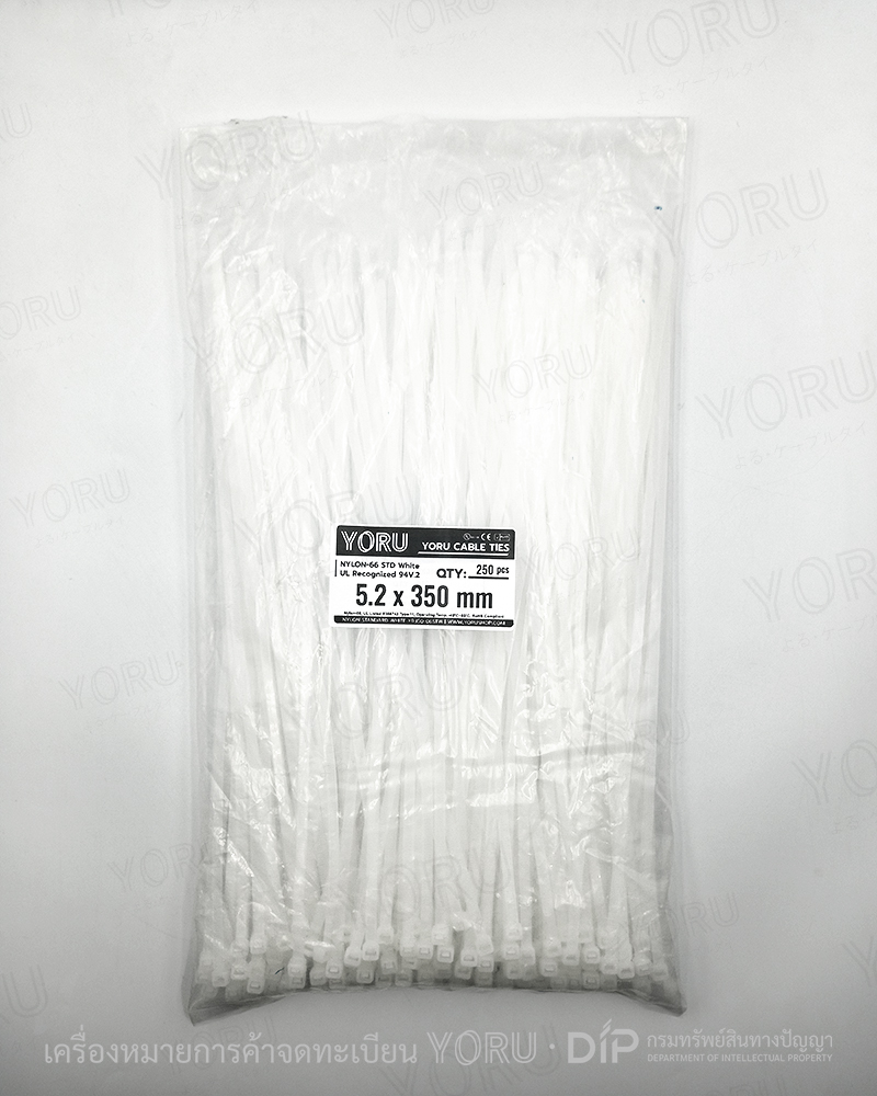 หน้าแรก › สเปคสินค้า › เคเบิ้ลไทร์ YORU สีขาว ขนาด 5.2 x 350 mm. (14 นิ้ว) แบบไนลอน Standard