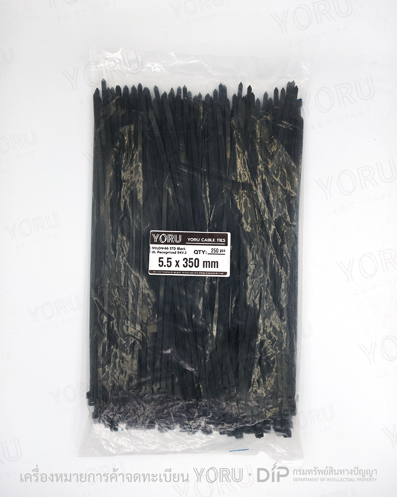หน้าแรก › สเปคสินค้า › เคเบิ้ลไทร์ YORU สีดำ ขนาด 5.5 x 350 mm. (14 นิ้ว) แบบไนลอน Standard