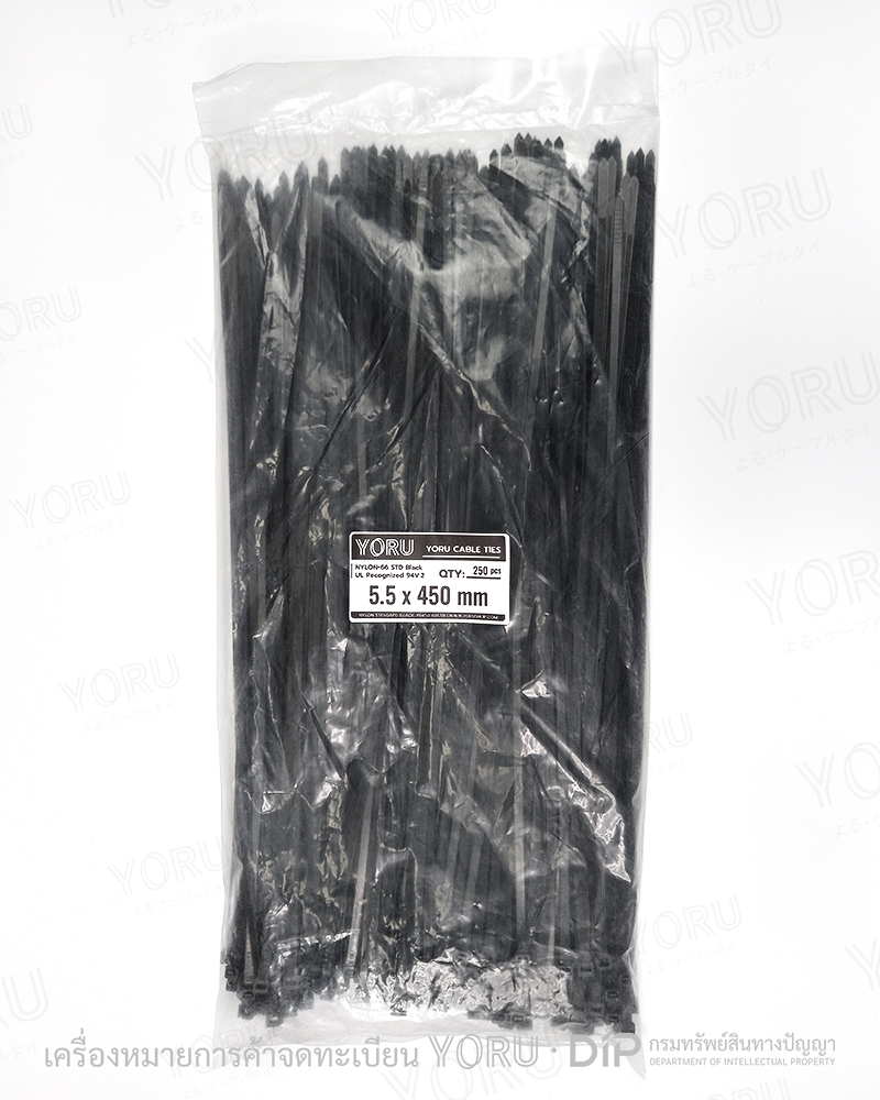 หน้าแรก › สเปคสินค้า › เคเบิ้ลไทร์ YORU สีดำ ขนาด 5.5 x 450 mm. (18 นิ้ว) แบบไนลอน Standard